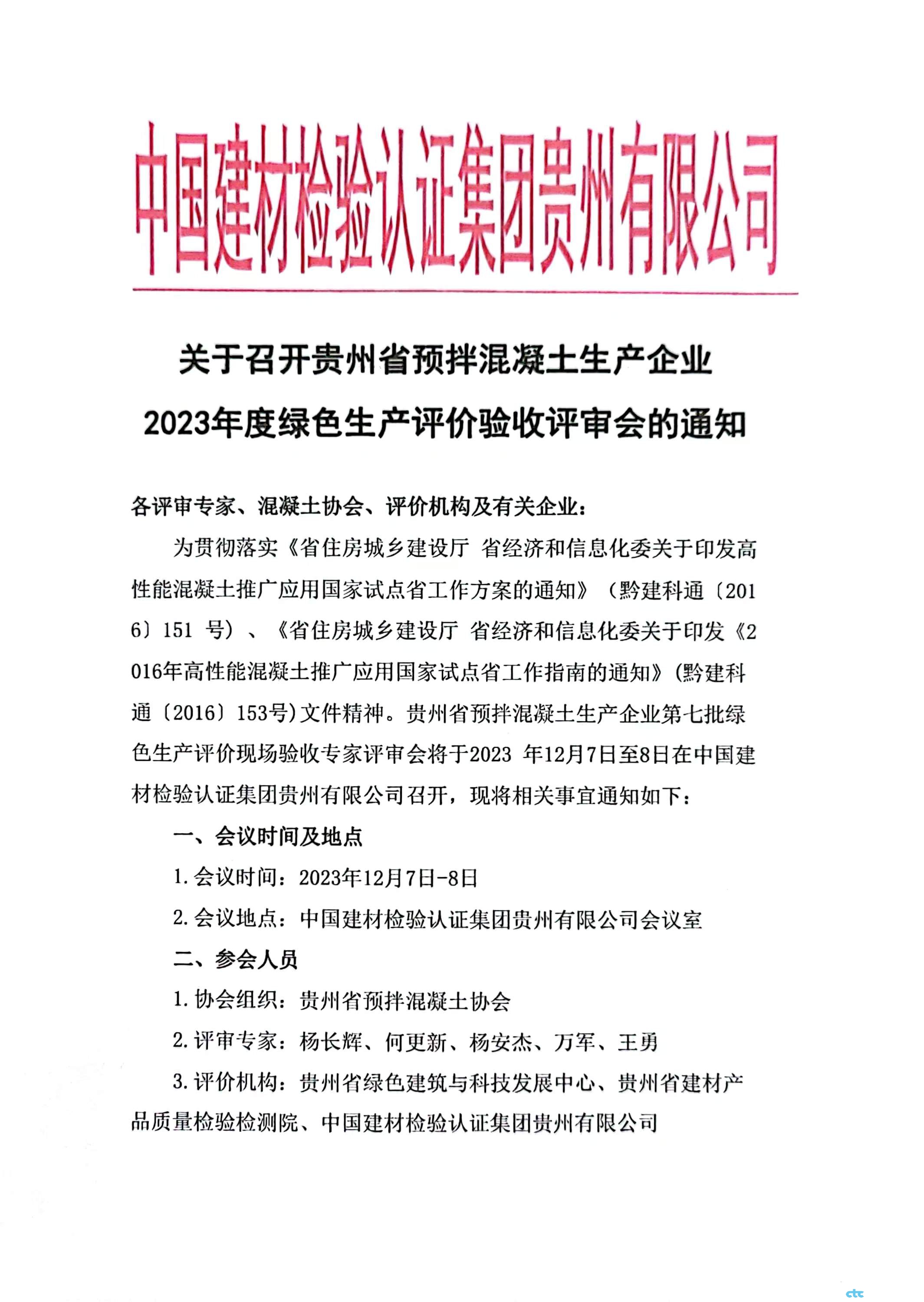 關于召開貴州省預拌混凝土生產(chǎn)企業(yè) 2023年度綠色生產(chǎn)評價驗收評審會的通知