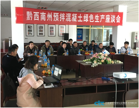 2017年3月15日,中國(guó)建材檢驗(yàn)認(rèn)證集團(tuán)貴州有限公司與黔西南州預(yù)拌混凝土協(xié)會(huì)聯(lián)合開展了黔西南州預(yù)拌混凝土綠色生產(chǎn)座談會(huì),會(huì)上中國(guó)建材檢驗(yàn)認(rèn)證集團(tuán)貴州有限公司專家介紹了預(yù)拌混凝土行業(yè)發(fā)展的方向以及轉(zhuǎn)型升級(jí)的需求。